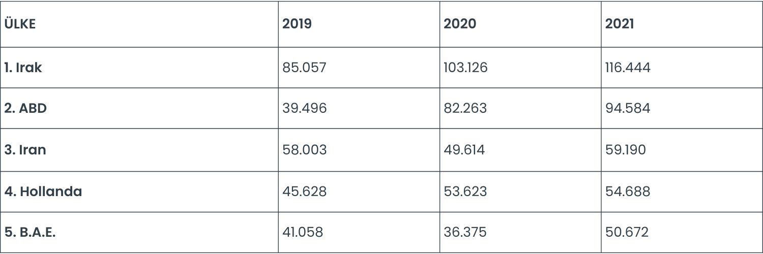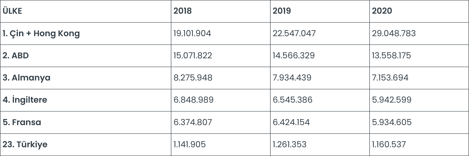 Bu tablodan da anlaşıldığı üzere pandemi dönemi olarak düşünebileceğimiz, 2020 ve 2021 dönemlerinde özellikle ABD’ye ihracat yükselmiş durumda. Tabi burada sadece pandemi değil, özellikle Amazon, Etsy gibi platformlar üzerinden yapılan mikro ihracatın etkisi de oldukça büyüktür.